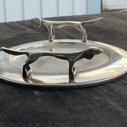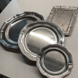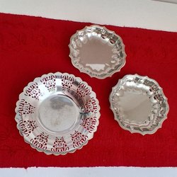 Silverfärgad bricka för servering.Löstagbar kant som en krona