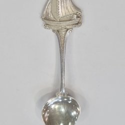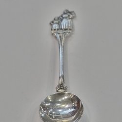 Sked i 830 silver. Skeden har en snäckformad skål med rosmotiv och ett handtag med utskurna bladdetaljer. L; 11 cm, B; 3 cm, vikt 13 gram