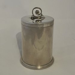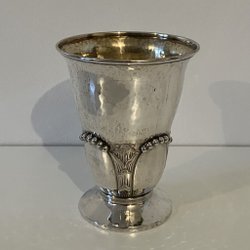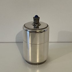 Parti silver bestående av ett nålhus, en tårtspade, ett hänge i form av en behållare, och en fot från en vas. Tårtspadens handtag är i silver och bladet i rostfritt stål. Hänget/behållren stämplat med S och kattfot på ögglan samt 835 på ringen.