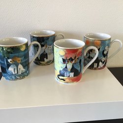 6 st kaffeskedar i sterling silver. Skedarna har emaljerade handtag i olika färger. 9,5 cm långa.
