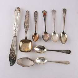 Teskedar, silver, blomornament, stämplade, S, kattfot. 5 st, vikt: 50g