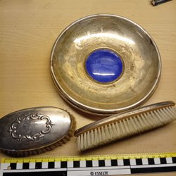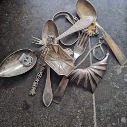 Två skedar och tång i silver se bilder för stämplar