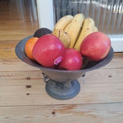 Ca 20cm hög skada på ena hand och liten lagning på foten.