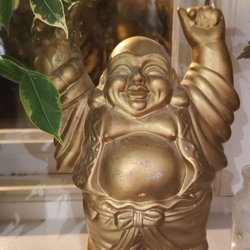 En vacker Buddha staty som kan bringa lugn och harmoni till ditt hem. Perfekt som en dekorativ detalj i vardagsrummet, sovrummet eller meditationsrummet.