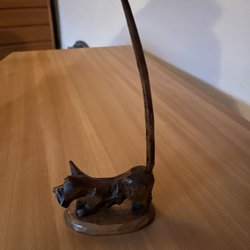 Kissande pojke i metall. Ram i teak. Vintage/retro skylt, 60-tal. Ca 1 dm hög. Handgjord i danmark, se baksida.