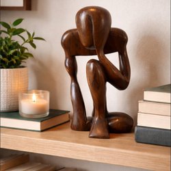 En handgjord träskulptur. Denna unika figur är tillverkad av trä och har fina detaljer. Perfekt som en dekorativ inredningsdetalj.