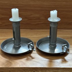 Paret ljusstakar i tenn. Enl.bilder.