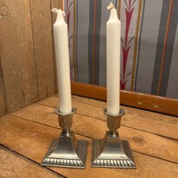 2 ljusstakar tenn, märkta CB Jönköping