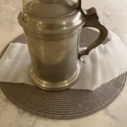 Tennstop med lock och handtag. Höjd ca 26cm. Mycket fint om än med ett par mindre märken som syns på bilder.