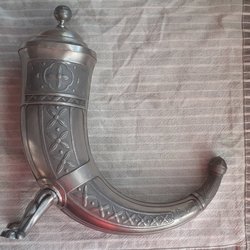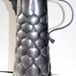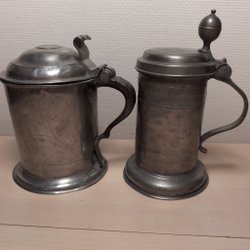 Ett tennstop med lock och handtag. Går att öppna och stänga utan problem Stämplar finns på botten.
