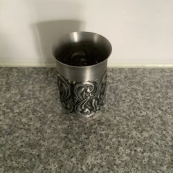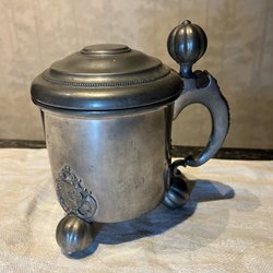 Stop med handtag och vapensköld. 13 cm hög och 8.5 cm i diameter i öppning