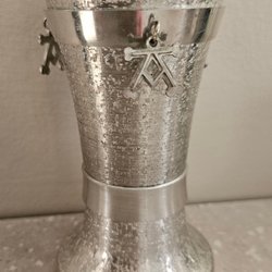 En tenn lien bägare har en buckla på foten men står stabilt endå se bild