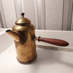 Tung äldre kanna i Mässing med benhandtag.