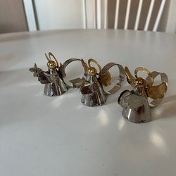Tre tyngder till duk i form av ankor eller änder. Materialet är mässing.