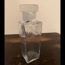 15,5 cm hög och 7,5 cm i diameter både upptill och nertill. Den kan stå åt båda hållen, passar med runda ljus på ena sättet och med blockljus eller större värmeljus på andra sättet. I fint begagnat skick.