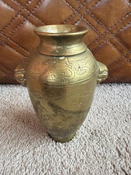 Dekorativ mässingsvas / prydnadskärl, troligen i orientalisk eller asiatisk stil.