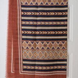 Vacker kudde med sicksackmönster på framsidan i rosa, bruna och gröna nyanser. Äldre hantverk. 46 x 34 cm. Gott begagnat skick.