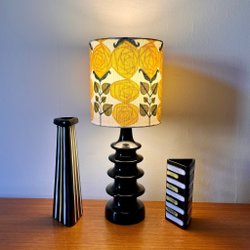 Nytillverkad lampskärm i retrotextil.