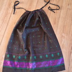 Detta är ett historiskt förkläde, troligen från andra delen av 1800talet, tillverkad av jaquardvävt siden med spetsen. Det finns på en gård i Järvsötrakten, Hälsingland.