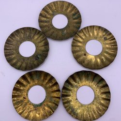 Vi erbjuder en samling av sju fyrkantiga mässings ljusmachetter med ett cirkulärt hål i mitten. Dessa ljusmachetter har en rustik, handgjord känsla med ojämna kanter och en naturlig patina. Perfekta för konstnärliga projekt, inredningsdetaljer eller samlingar.
