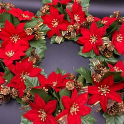 - Stjälkarna och bladen är gröna och tillverkade av metall, och de är fästa i en grön bågformad bas, som ger stabilitet.