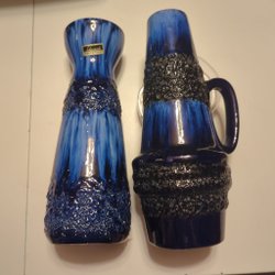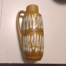 En vacker grön vas med ett unikt mönster. Vasen är märkt "W.GERMANY 203 18" undertill.
