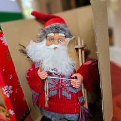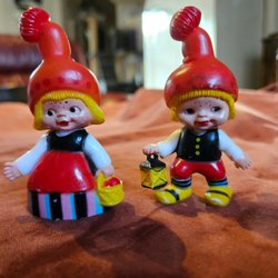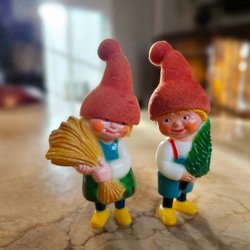 Söt julgransprydnad i form av en ljuslykta. Motivet är tomtar i ett vinterlandskap.