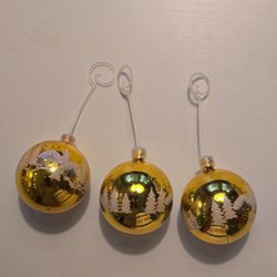 4 julkulor tror de är tillverkade i plast. Ena hänget är bytt längd 13 cm
