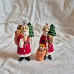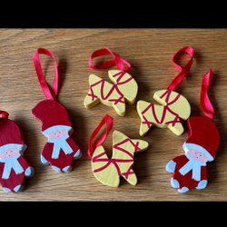 Ett set med tomtar med ögla för upphängning. Perfekt som julgranspynt eller dekoration.