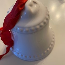 Julgransprydnad i form av en bell. Kommer i originalkartong.17 cm . Liten nagg enligt bild på en av klockorna.