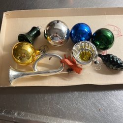 Julgranskulor i blandade färger och storlekar som är begagnade.