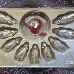Antik gammal girlang klockor glas fattigmanssilver antikt julgranspynt vintage