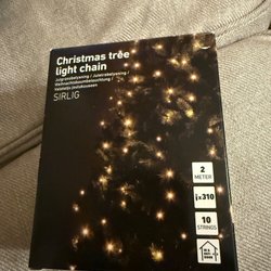 16 julgransljus med totalläng på 1050 cm. För inomhusbruk. Oanvänd men inköpt för ett antal år sedan.
