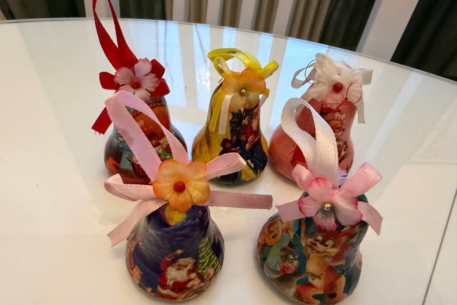 Fem handgjorda julgransdekorationer. Perfekt för att dekorera julgranen eller som en festlig detalj i hemmet.