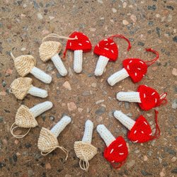 10 stycken virkade hjärtan. Fina att hänga i granen, granriset, använda vid dukning eller dekorera paket med.