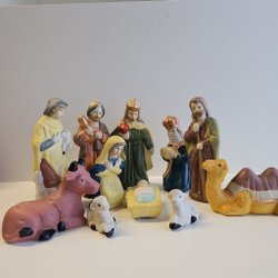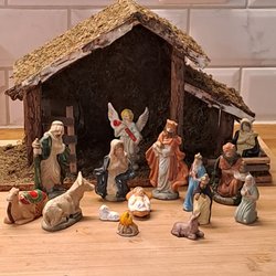Komplett julkrubba med tillhörande figurer. Perfekt för att skapa julstämning i hemmet. Innehåller alla klassiska karaktärer och djur som hör julkrubban till.