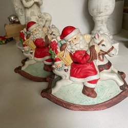 Söt jultomte på gunghäst i keramik.