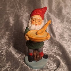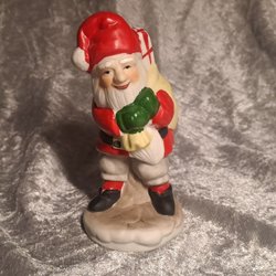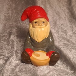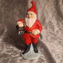 En charmig vintage tomtefigur från 1973. Tomten sitter på en släde och håller i en lykta. Perfekt som en dekorativ detalj under julen eller som en del av en samling.