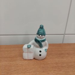 Söt liten tomte med röd stickad luva och lykta. Perfekt som juldekoration. Höjd: 14 cm.