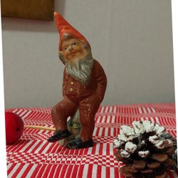 Gammal vacker tomte,från tidigt 1900- tal,Hel och fin inget lagat på denna Gjord i keramik, väldigt lite färgbortfall, se bilder!.Höjd ca 15 cm .Lägg märke till tomtens vackra kängor som går upp en bit till knäna".
