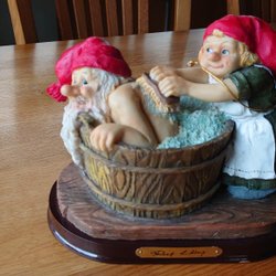 En charmig Rolf Lidberg figur föreställande en tomte som bjuder en räv på kakor. Perfekt för samlaren eller som en dekorativ detalj i hemmet. Perfekt skick med originalkartong. Höjd ca 12 cm.