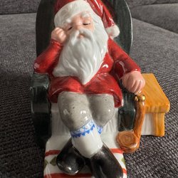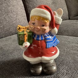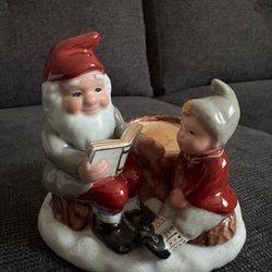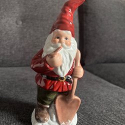 Riktigt gamla Set med tre charmiga jultomtar i keramik. Perfekt för att sprida julstämning i hemmet. Dekorativa figurer som passar bra på hyllan, bordet eller i julgruppen.