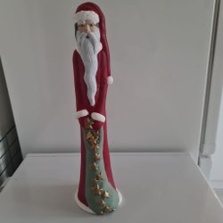 Dekorativ jultomte figur från Hedlund. Perfekt för att sprida julstämning i hemmet. Tomten har en detaljerad design med en röd luva, blå tröja och röda byxor. Han håller i en klocka och en käpp. Hel och fin.