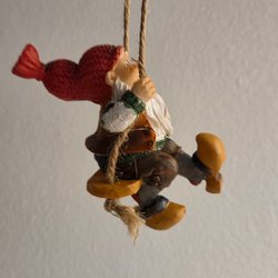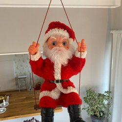 Dekorativ tomtefigur på en gunga. Perfekt som juldekoration eller som en charmig detalj i hemmet. Tyvärr saknas stämpel eller etikett så jag vet inte vem är design.