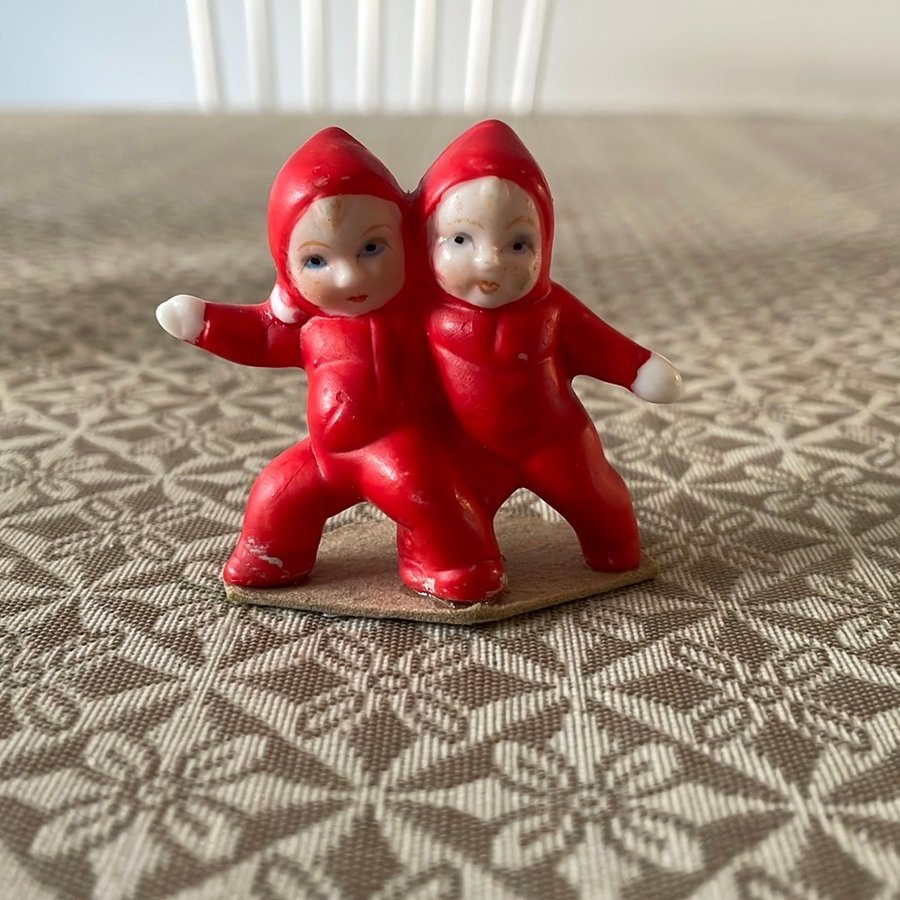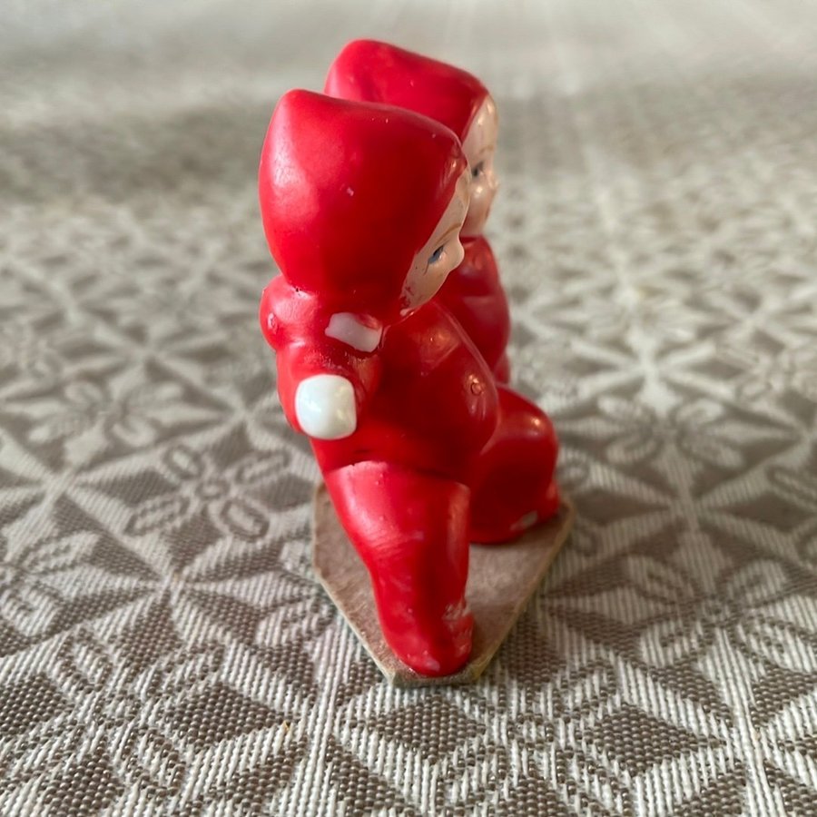 Vintage /retro Figurin Två små tomtebarn tomtar