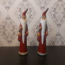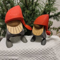 Två dekorativa tomtar i keramik.