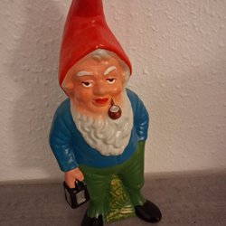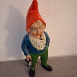 En klassisk trädgårdstomte i keramik. Tomten är klädd i röd luva och jacka, har ett vitt skägg och svarta skor. Perfekt för att dekorera trädgården eller uteplatsen.