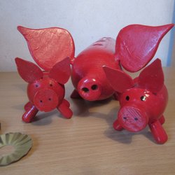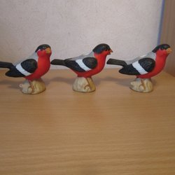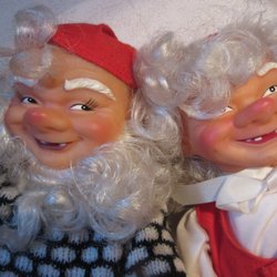 Dom är helt och hållet tillverkade i någon slags konstmassa och har mössorna nerdragna över ögonen. Väger tillsammans ca:780gr innan packning.