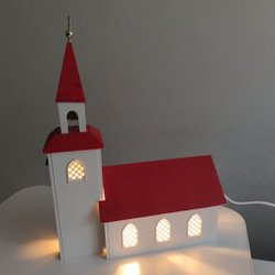 Handmålad tomteverkstad med belysning från Markslöjd.