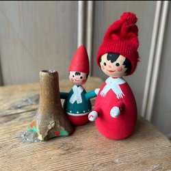 Retro Julpynt Trätomtar